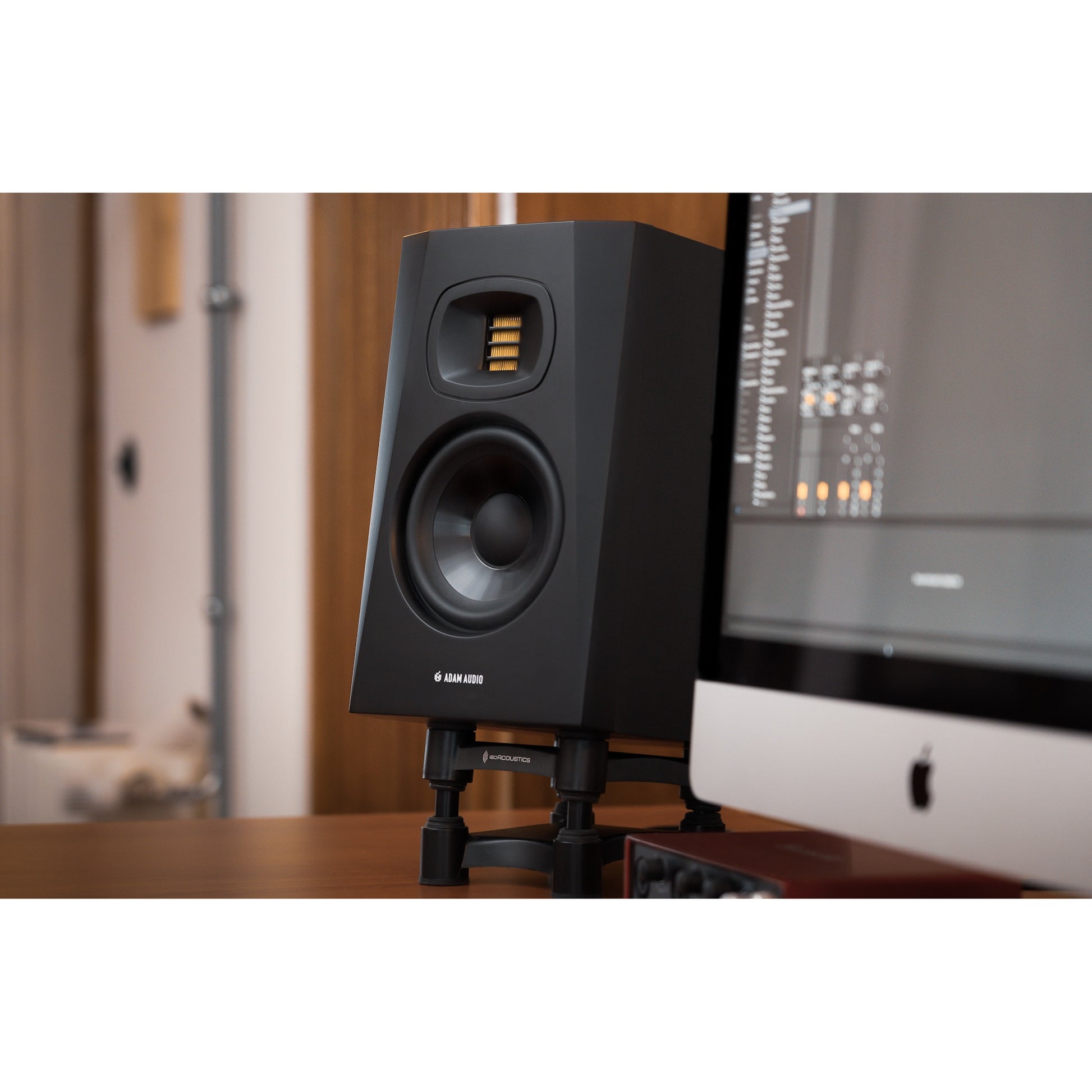 With its 5″ woofer, the T5V extends bass frequency response to 45 Hz. The new U-ART tweeter, a groundbreaking solution for high-resolution recording and mixing on a budget, goes up to 25 kHz and is paired with a precision waveguide with the same dispersion control properties as the High Frequency Propagation (HPS) waveguide used in ADAM Audio’s flagship S-series monitors. The waveguide’s highly uniform dispersion of high frequencies provides an incredibly wide sweet spot, freeing you from being glued to a rigid mixing position while you work.