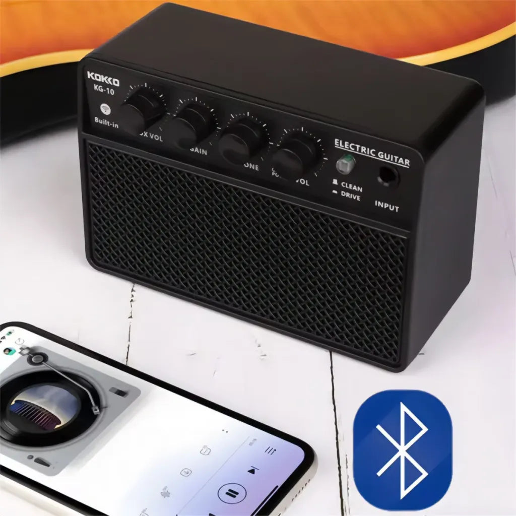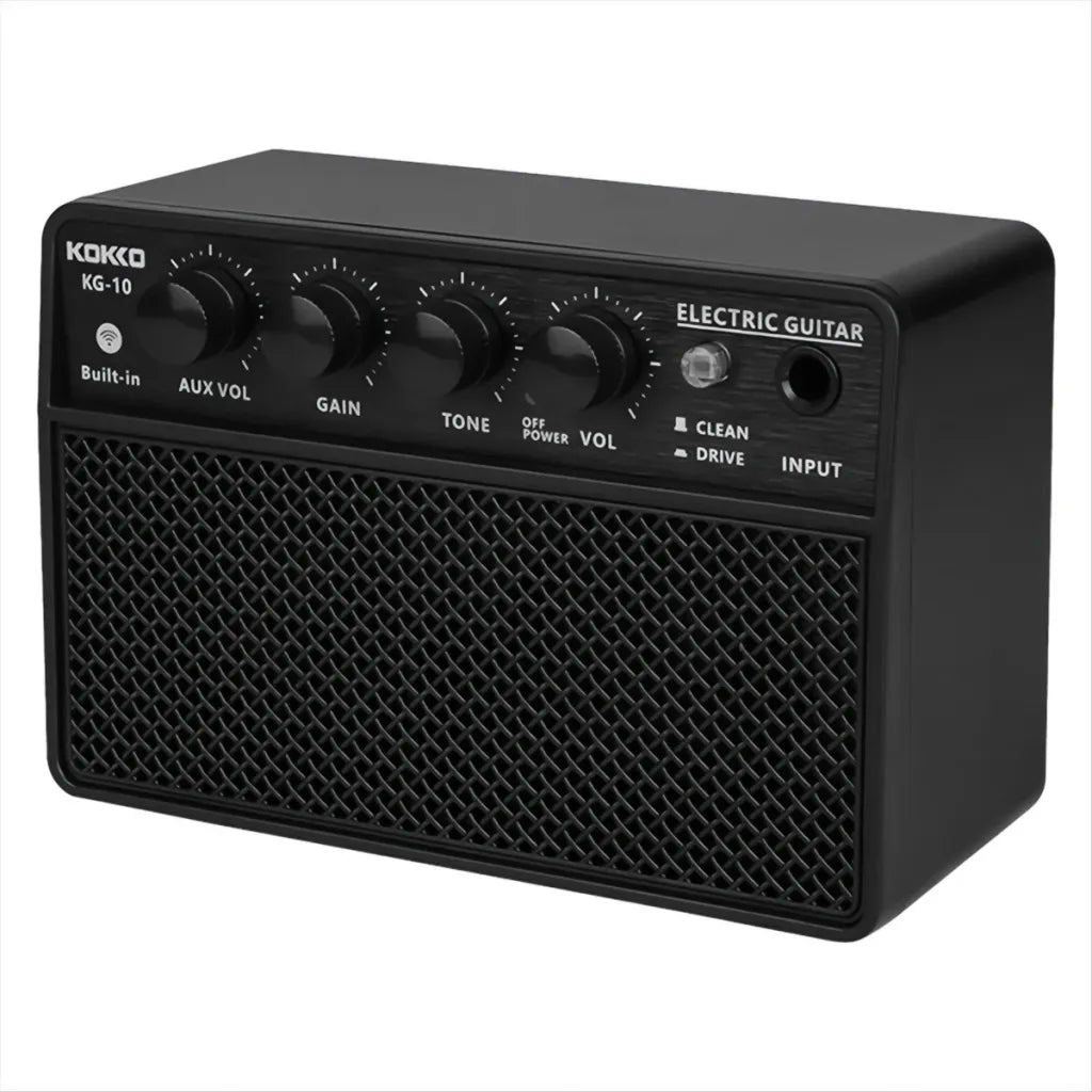 Kokko KG-10 er en lille, men kraftfuld guitarforstærker, der gør det nemt at øve og jamme hvor som helst. Den kompakte konstruktion og det genopladelige batteri giver fuld frihed, mens den solide 10-watt udgangseffekt leverer mere end rigelig lyd til stuen, øvelokalet eller backstage.